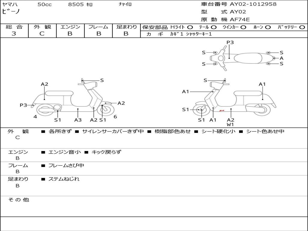 | Номер рамы / VIN | AY02-1012958 |