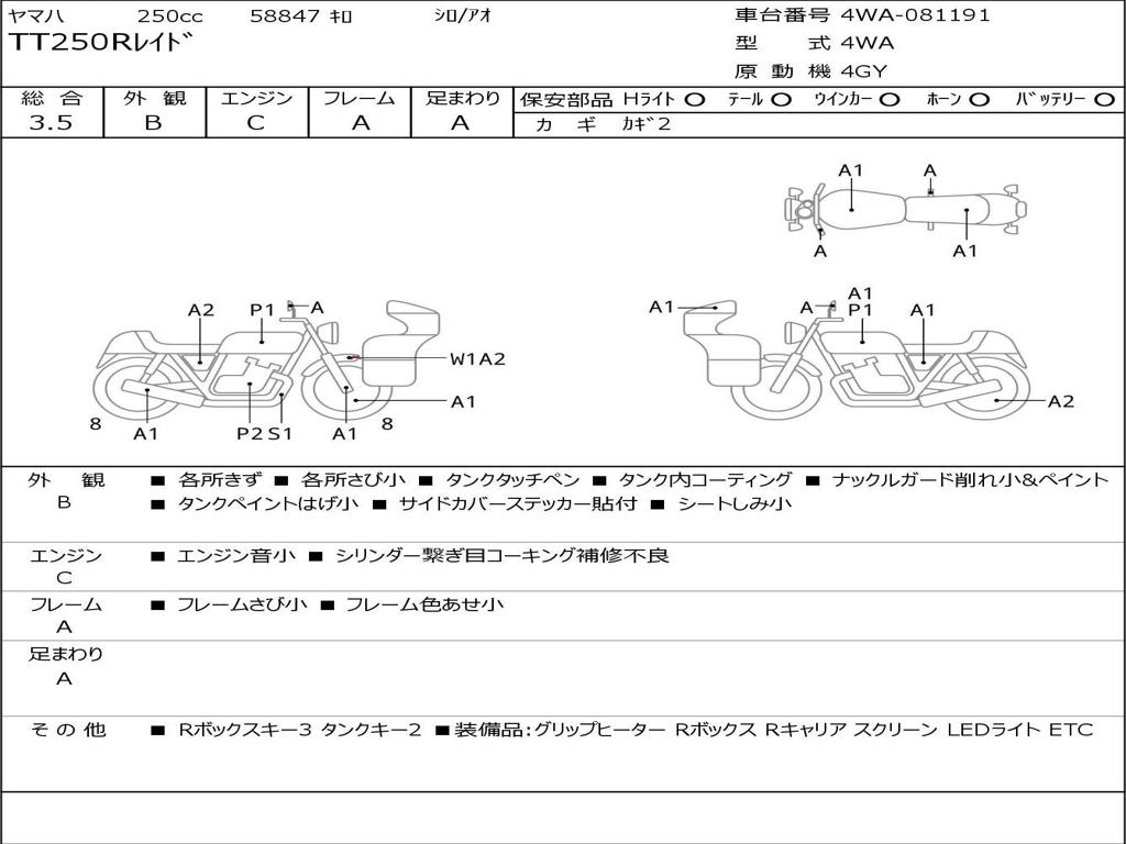 | Номер рамы / VIN | 4WA-081191 |