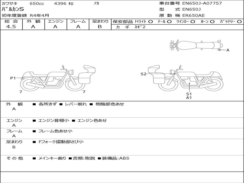 | Номер рамы / VIN | EN650J-A07757 |