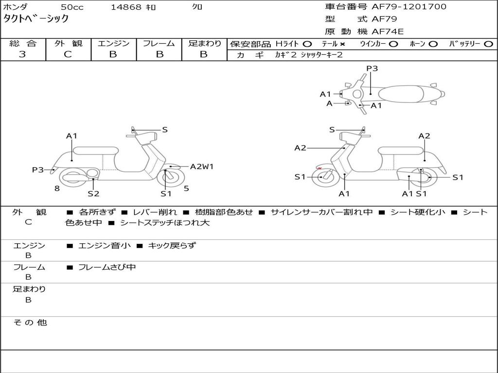 | Номер рамы / VIN | AF79-1201700 |
