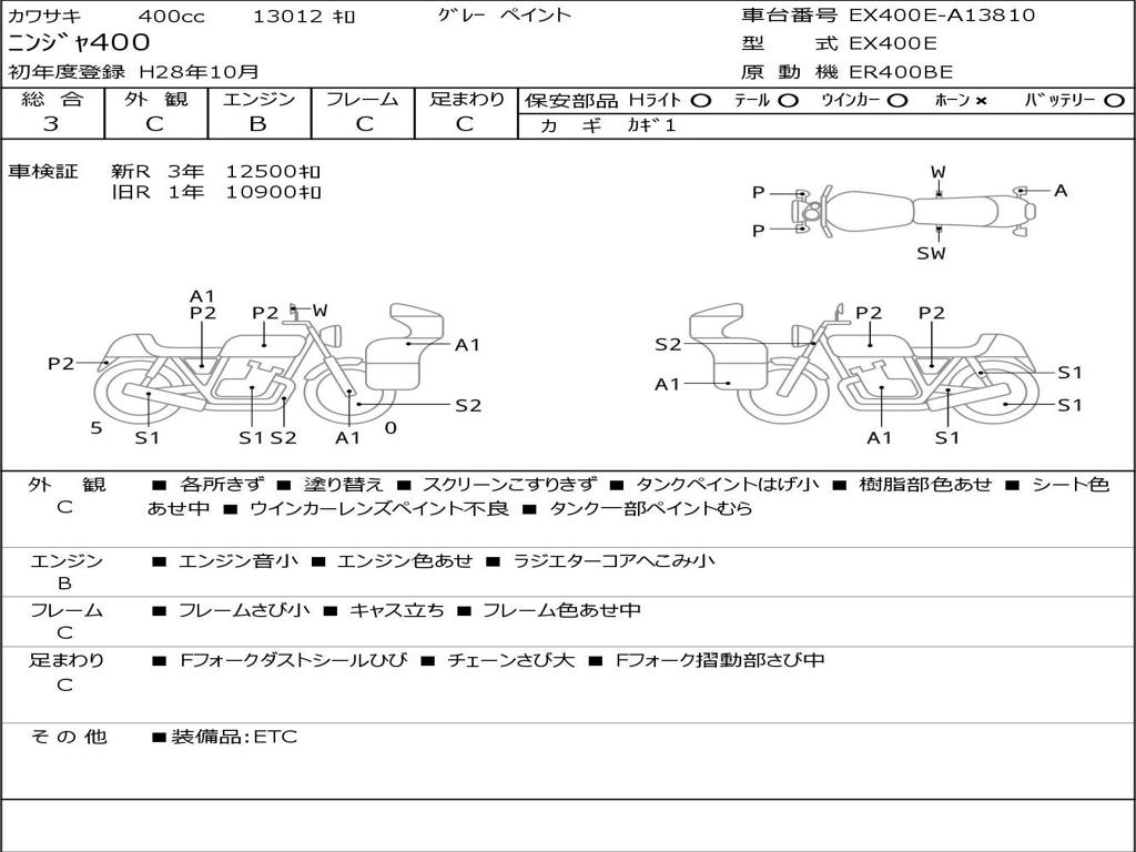 | Номер рамы / VIN | EX400E-A13810 |