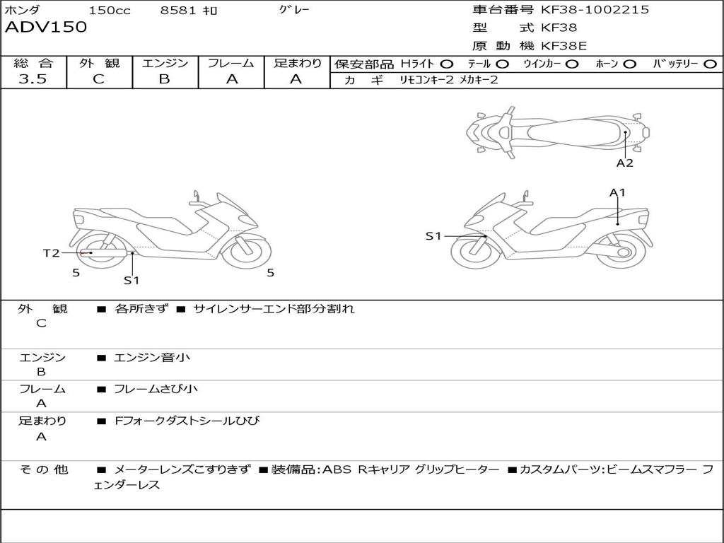 | Номер рамы / VIN | KF38-1002215 |