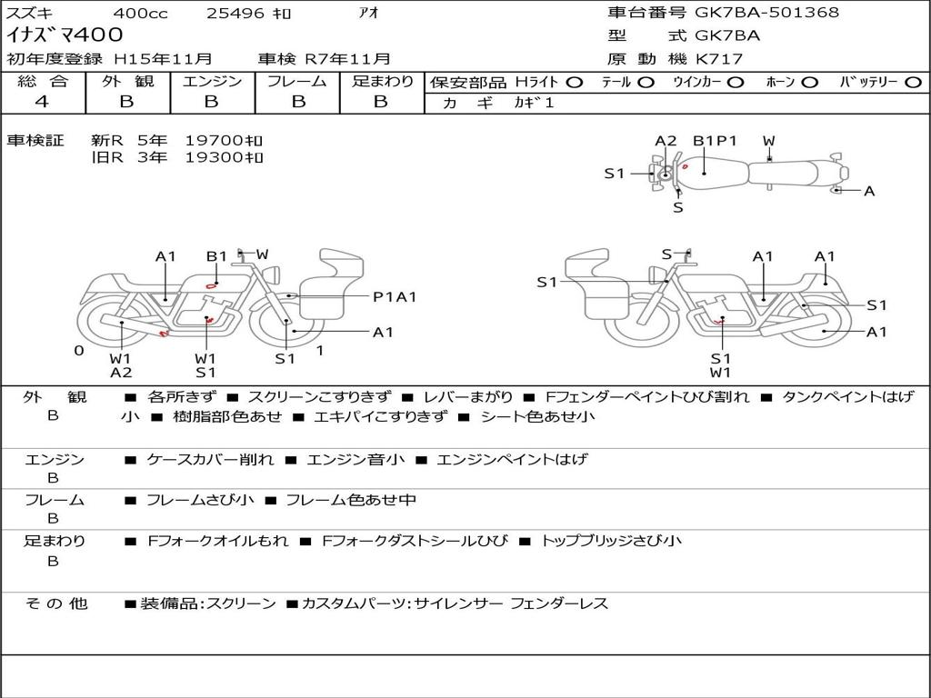 | Номер рамы / VIN | GK7BA-501368 |