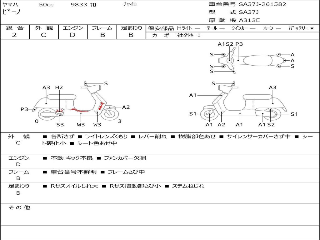 | Номер рамы / VIN | SA37J-261582 |