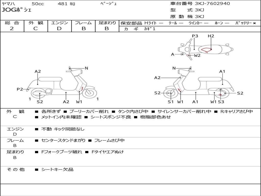 | Номер рамы / VIN | 3KJ-7602940 |
