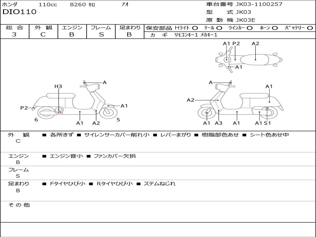 | Номер рамы / VIN | JK03-1100257 |