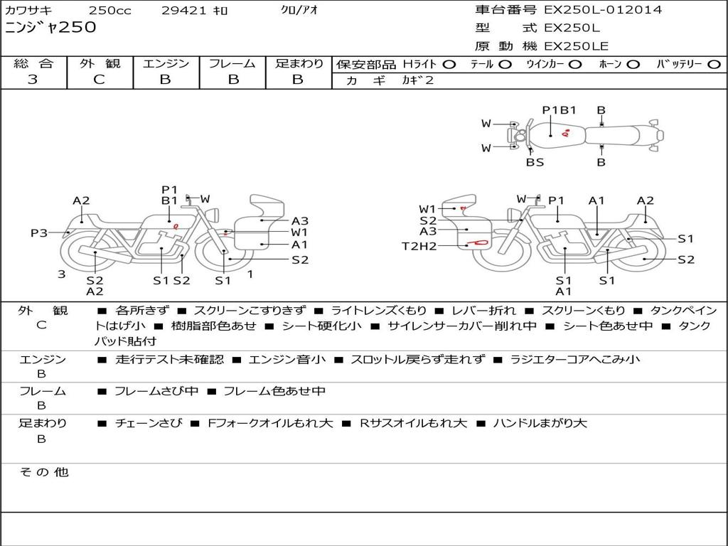 | Номер рамы / VIN | EX250L-012014 |