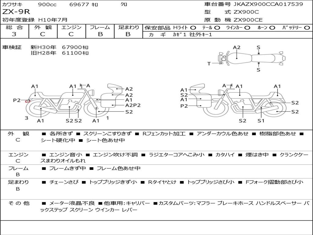 | Номер рамы / VIN | JKAZX900CCA017539 |