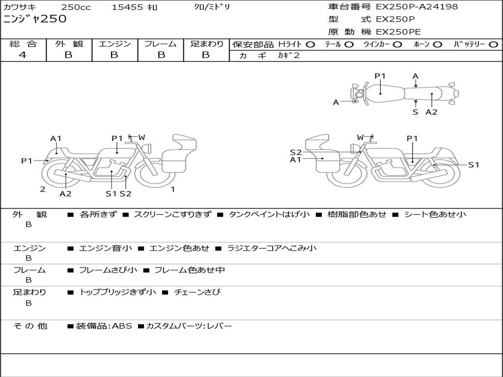 | Номер рамы / VIN | EX250P-A24198 |