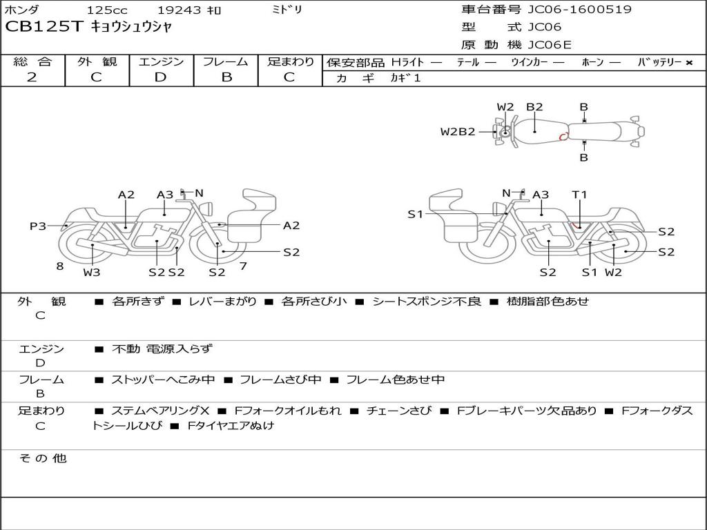 | Номер рамы / VIN | JC06-1600519 |