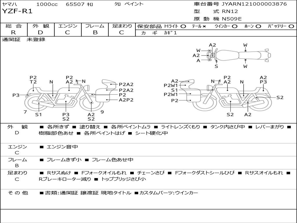 | Номер рамы / VIN | JYARN121000003876 |