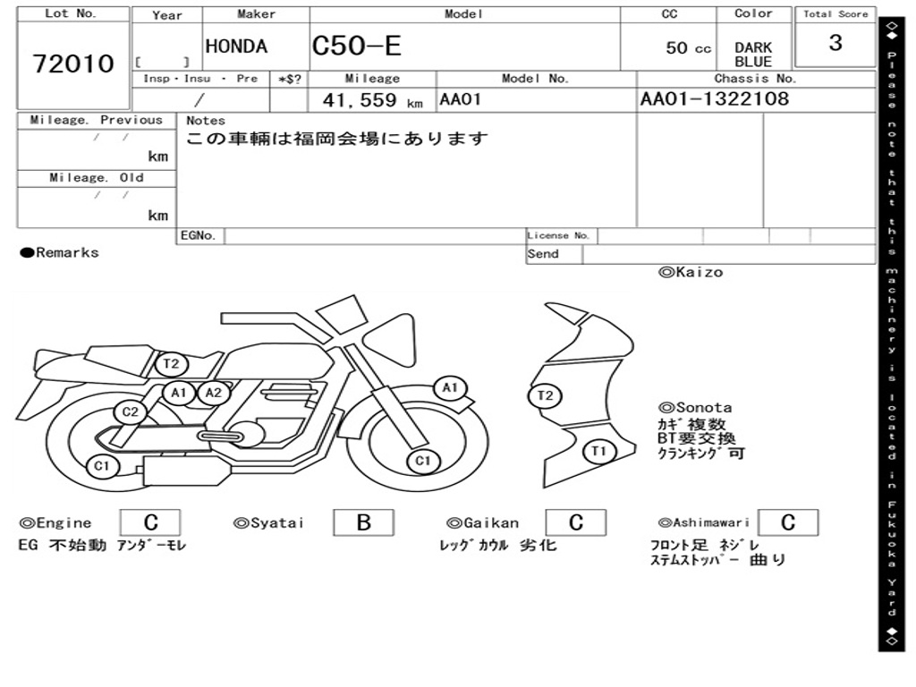 | Номер рамы / VIN | AA01-1322108 |