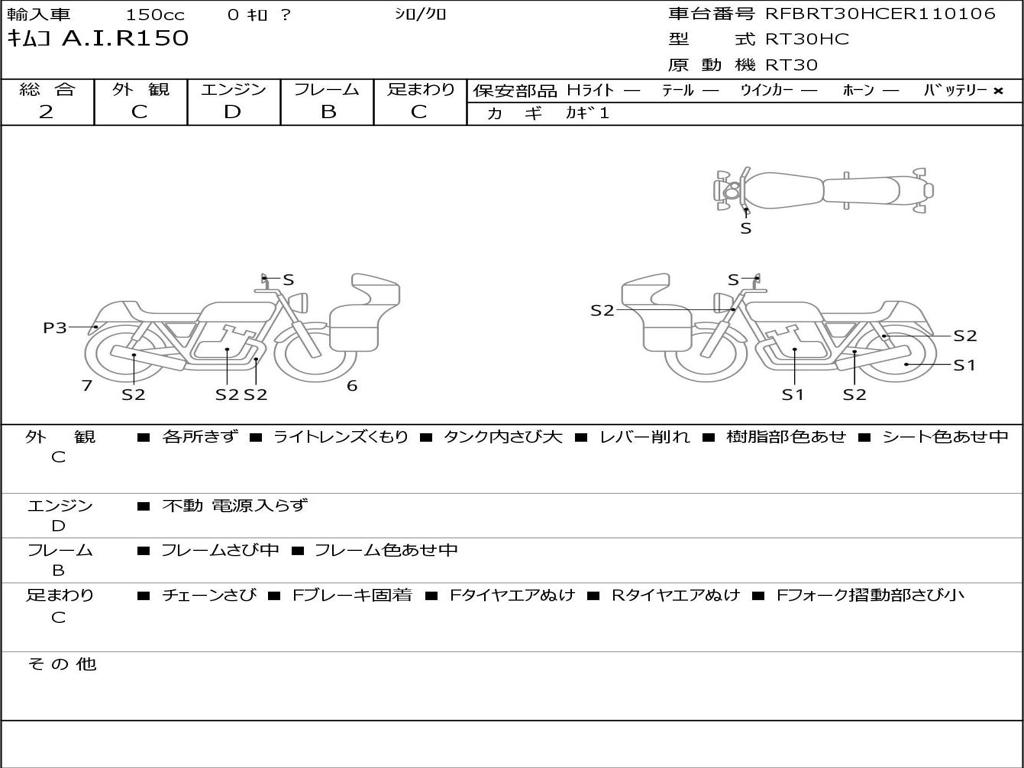 | Номер рамы / VIN | RFBRT30HCER110106 |