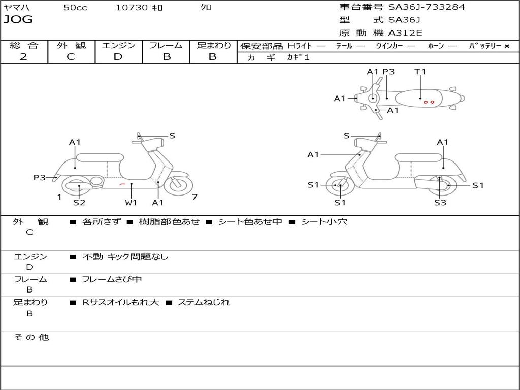 | Номер рамы / VIN | SA36J-733284 |