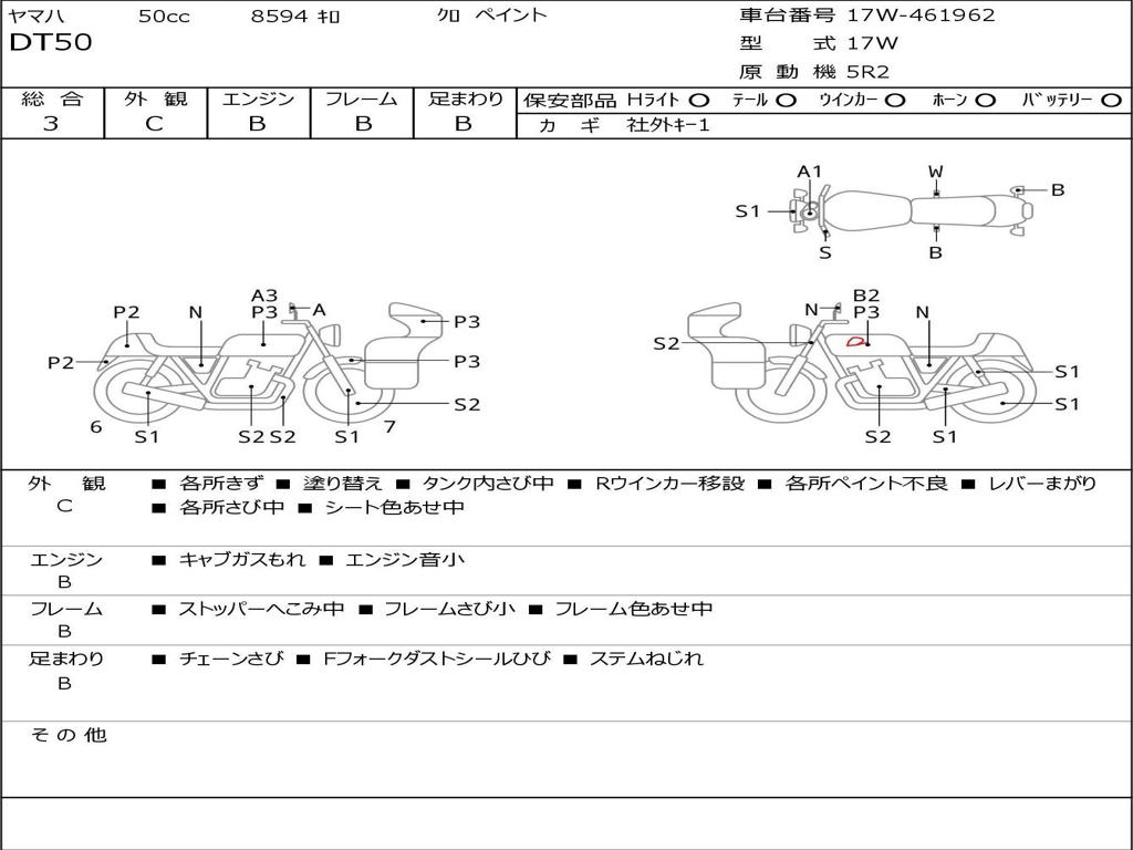 | Номер рамы / VIN | 17W-461962 |