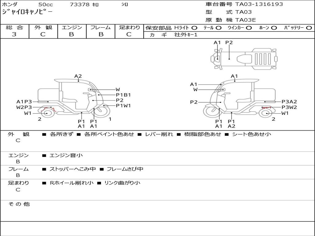 | Номер рамы / VIN | TA03-1316193 |