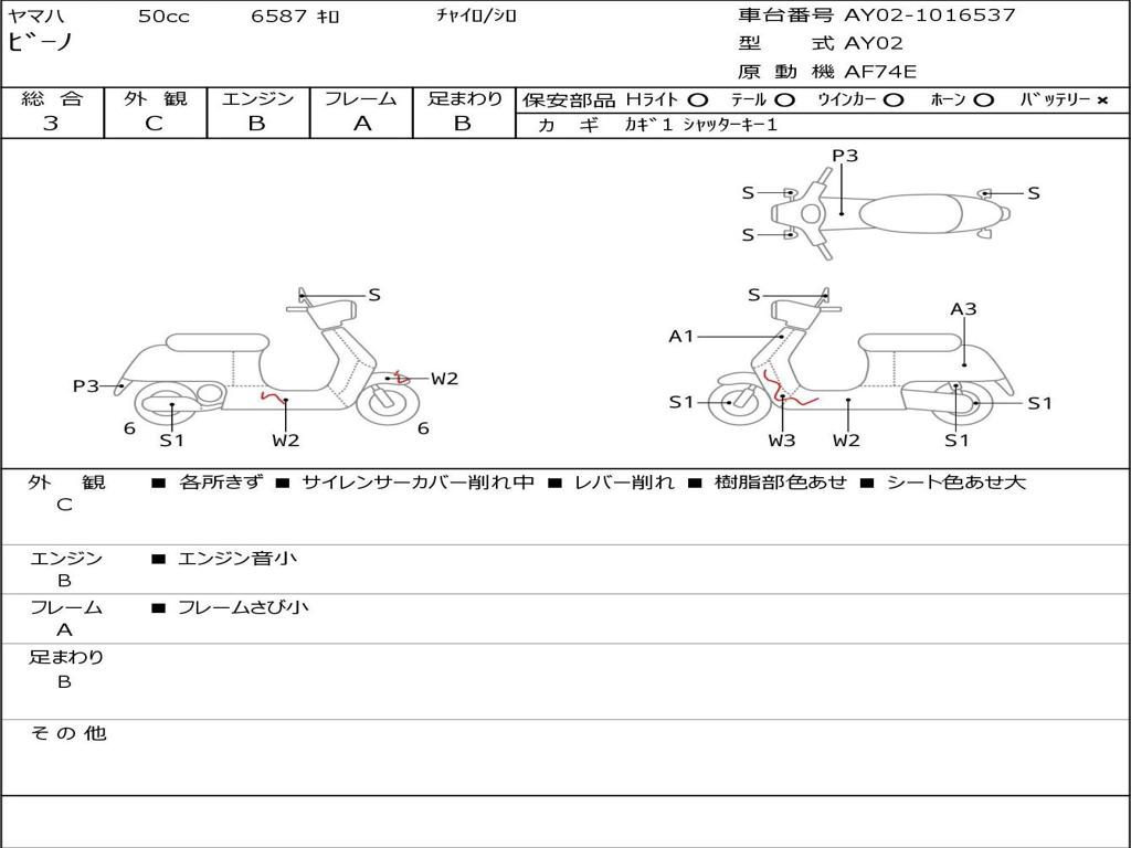| Номер рамы / VIN | AY02-1016537 |