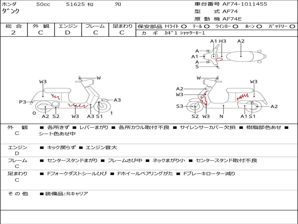 | Номер рамы / VIN | AF74-1011455 |
