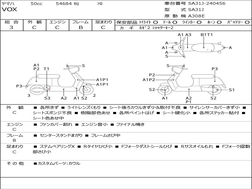 | Номер рамы / VIN | SA31J-240456 |
