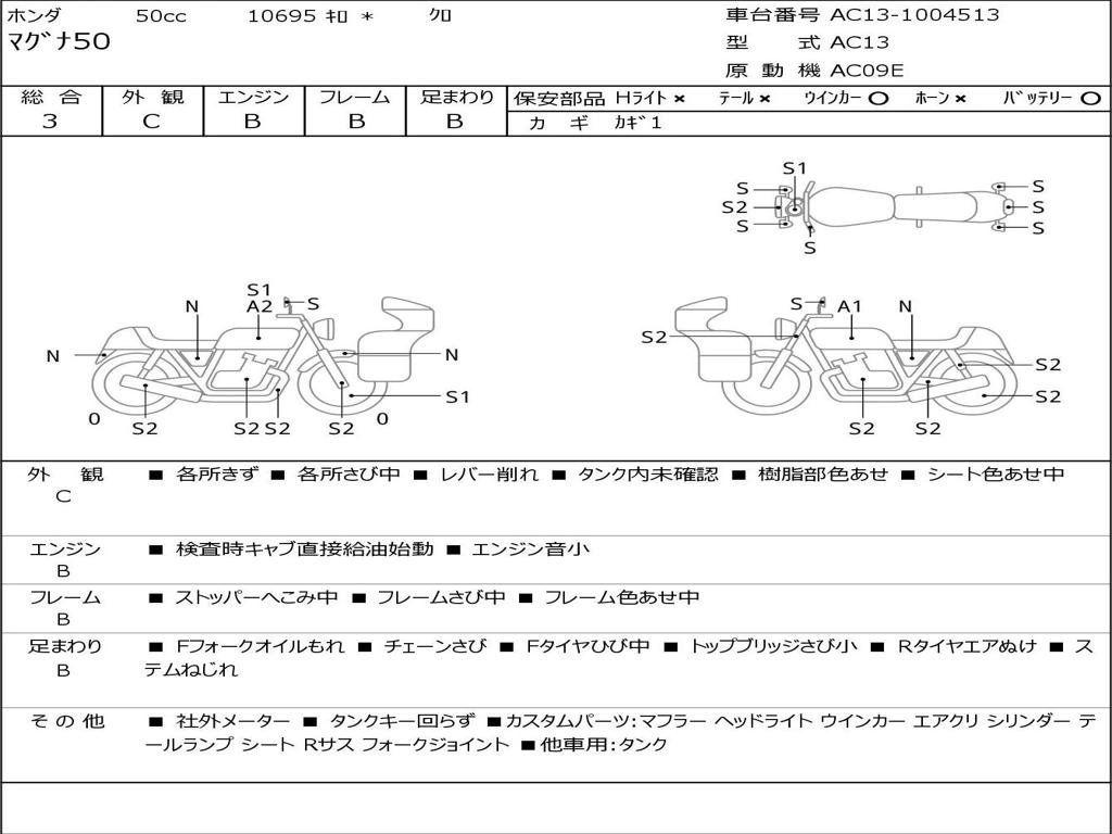 | Номер рамы / VIN | AC13-1004513 |