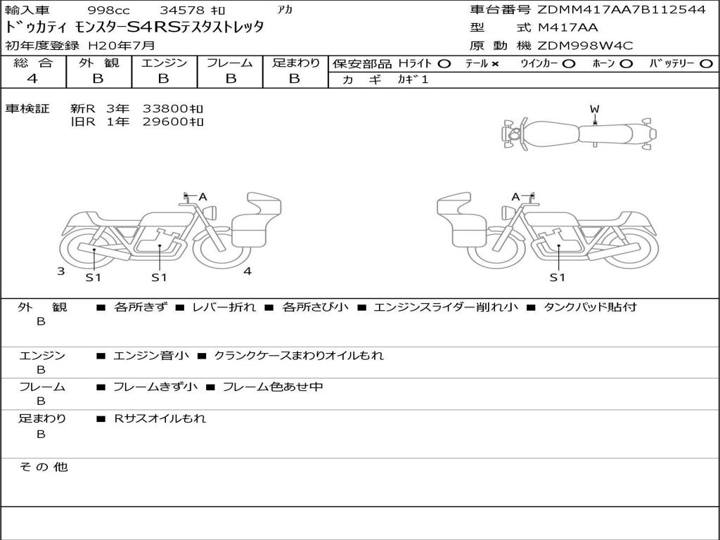 | Номер рамы / VIN | ZDMM417AA7B112544 |