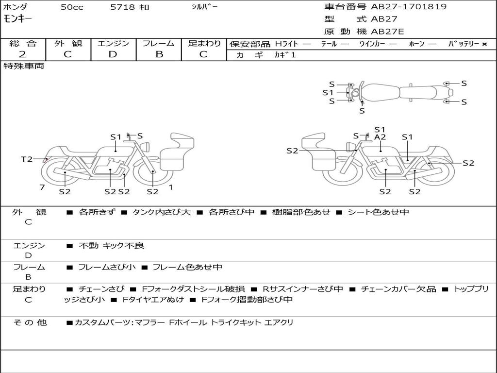 | Номер рамы / VIN | AB27-1701819 |