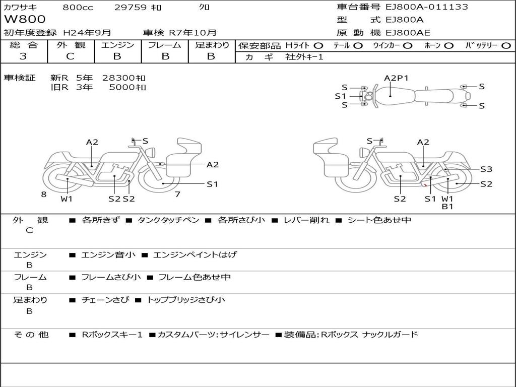 | Номер рамы / VIN | EJ800A-011133 |