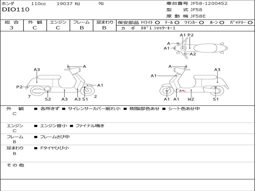 | Номер рамы / VIN | JF58-1200452 |