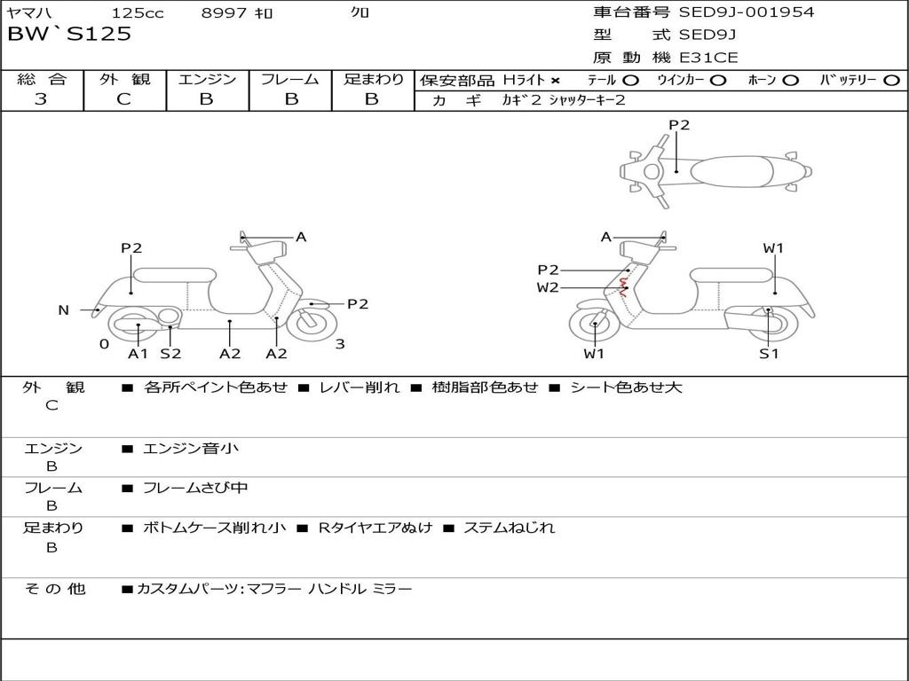 | Номер рамы / VIN | SED9J-001954 |