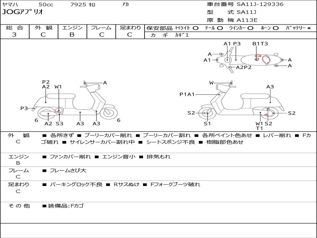 | Номер рамы / VIN | SA11J-129336 |