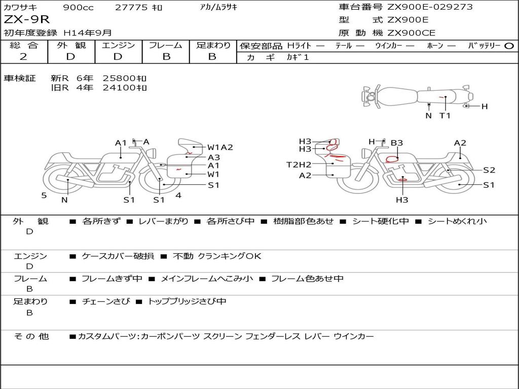 | Номер рамы / VIN | ZX900E-029273 |