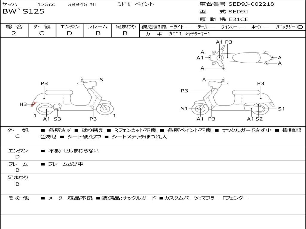 | Номер рамы / VIN | SED9J-002218 |