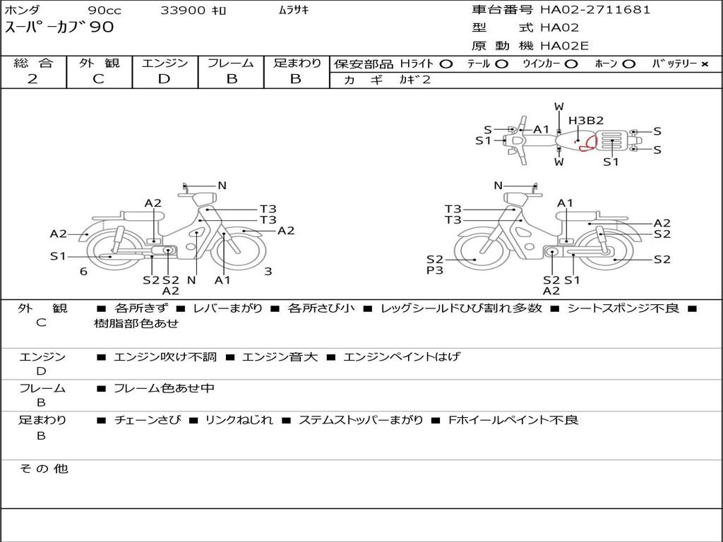 | Номер рамы / VIN | HA02-2711681 |