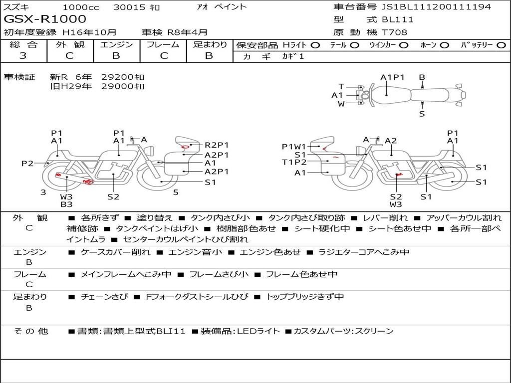 | Номер рамы / VIN | JS1BL111200111194 |