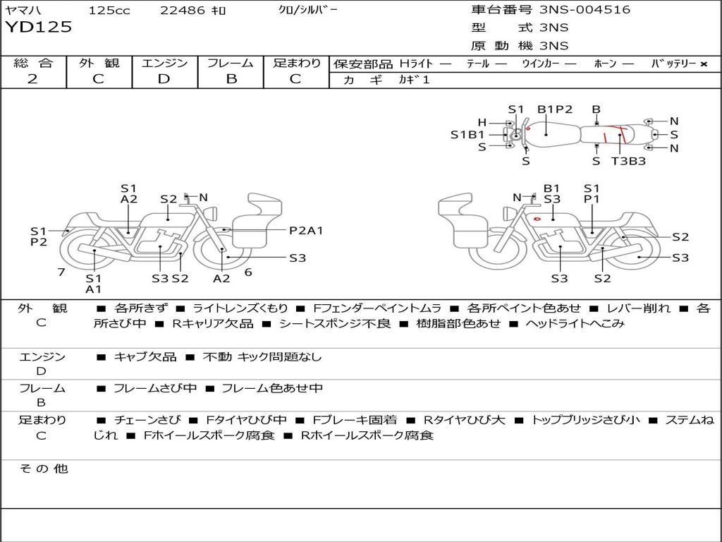 | Номер рамы / VIN | 3NS-004516 |