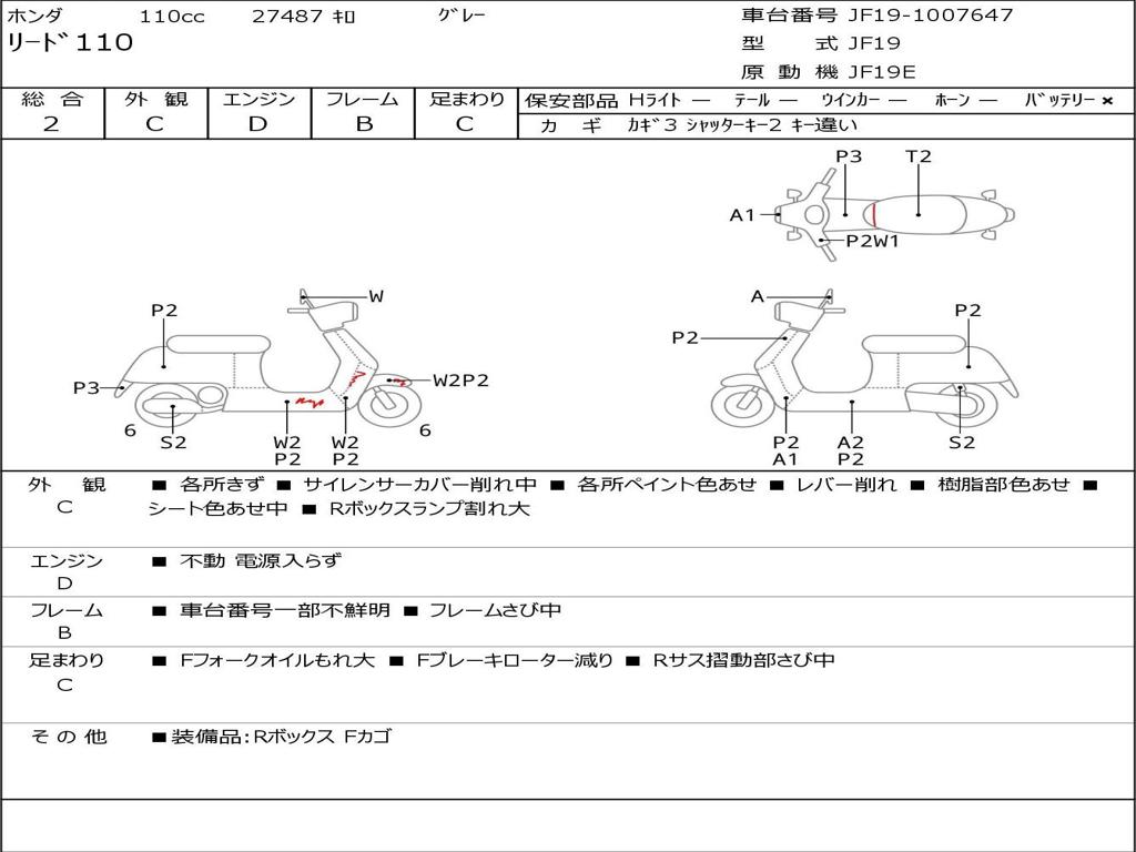 | Номер рамы / VIN | JF19-1007647 |