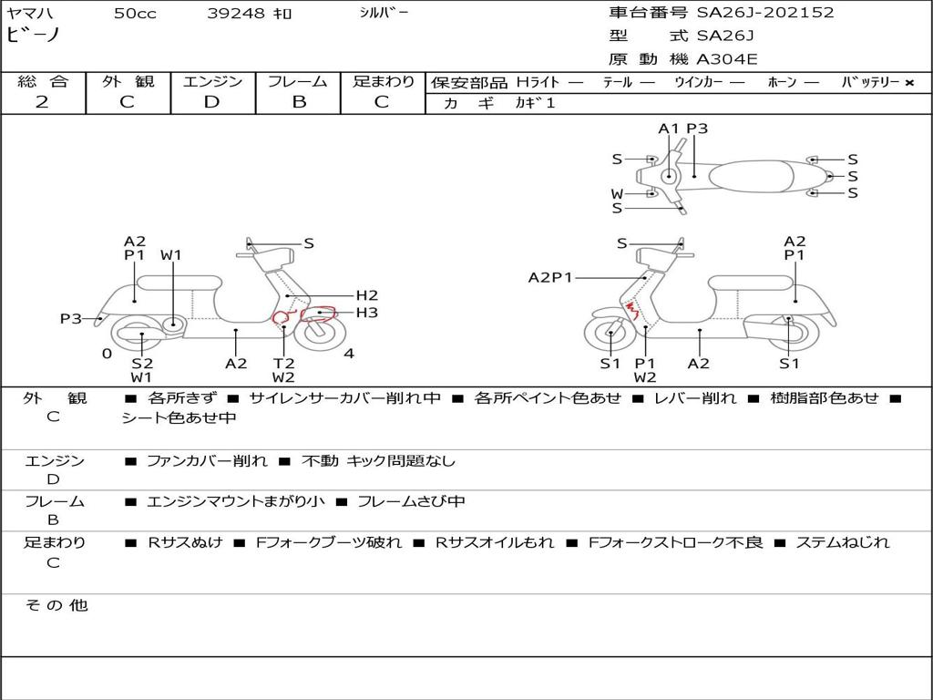 | Номер рамы / VIN | SA26J-202152 |