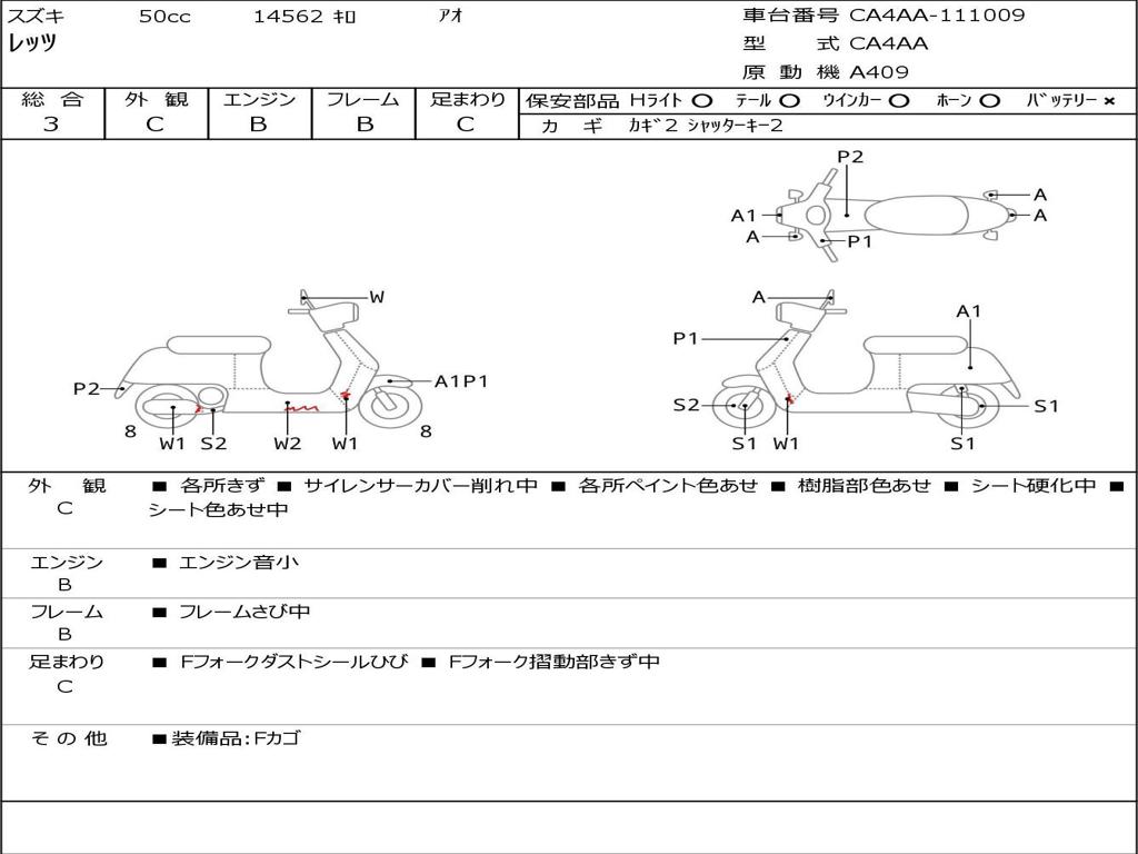 | Номер рамы / VIN | CA4AA-111009 |