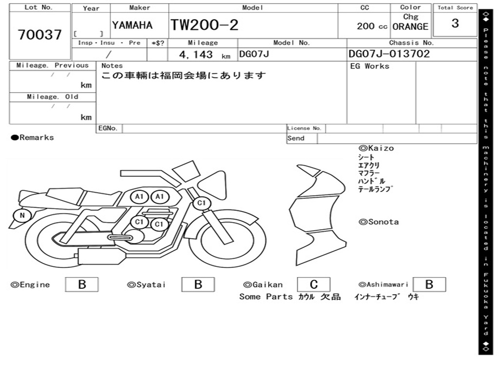 | Номер рамы / VIN | DG07J-013702 |
