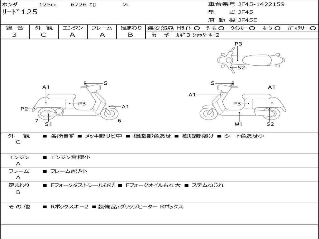 | Номер рамы / VIN | JF45-1422159 |