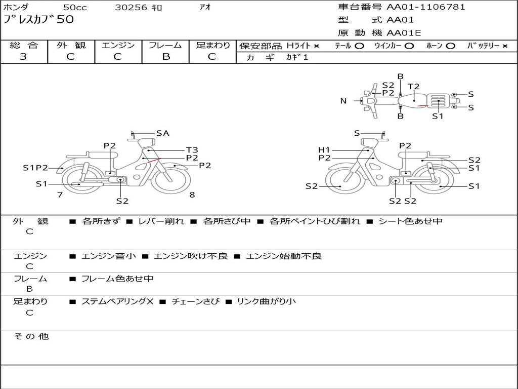 | Номер рамы / VIN | AA01-1106781 |