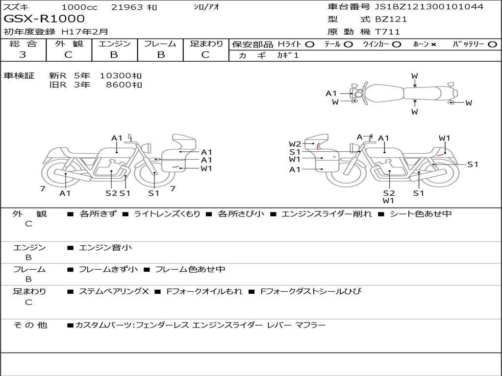 | Номер рамы / VIN | JS1BZ121300101044 |