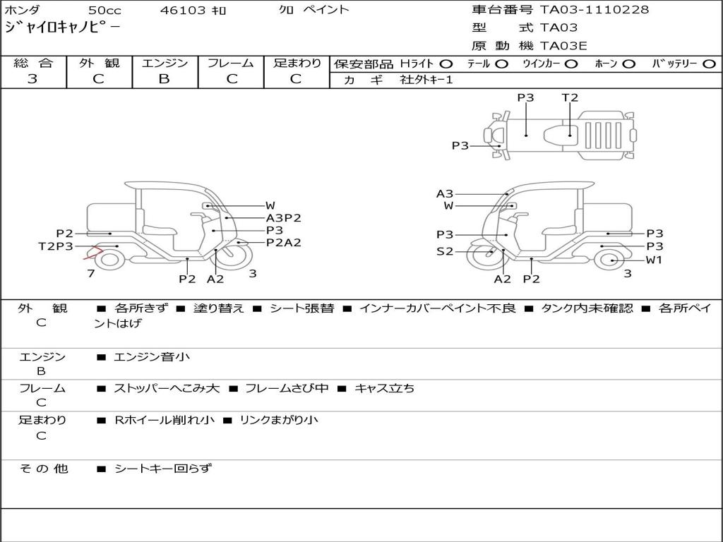 | Номер рамы / VIN | TA03-1110228 |