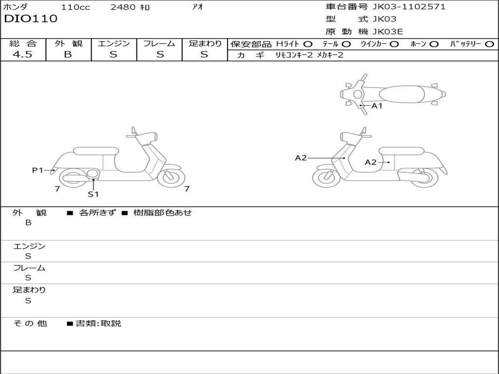 | Номер рамы / VIN | JK03-1102571 |