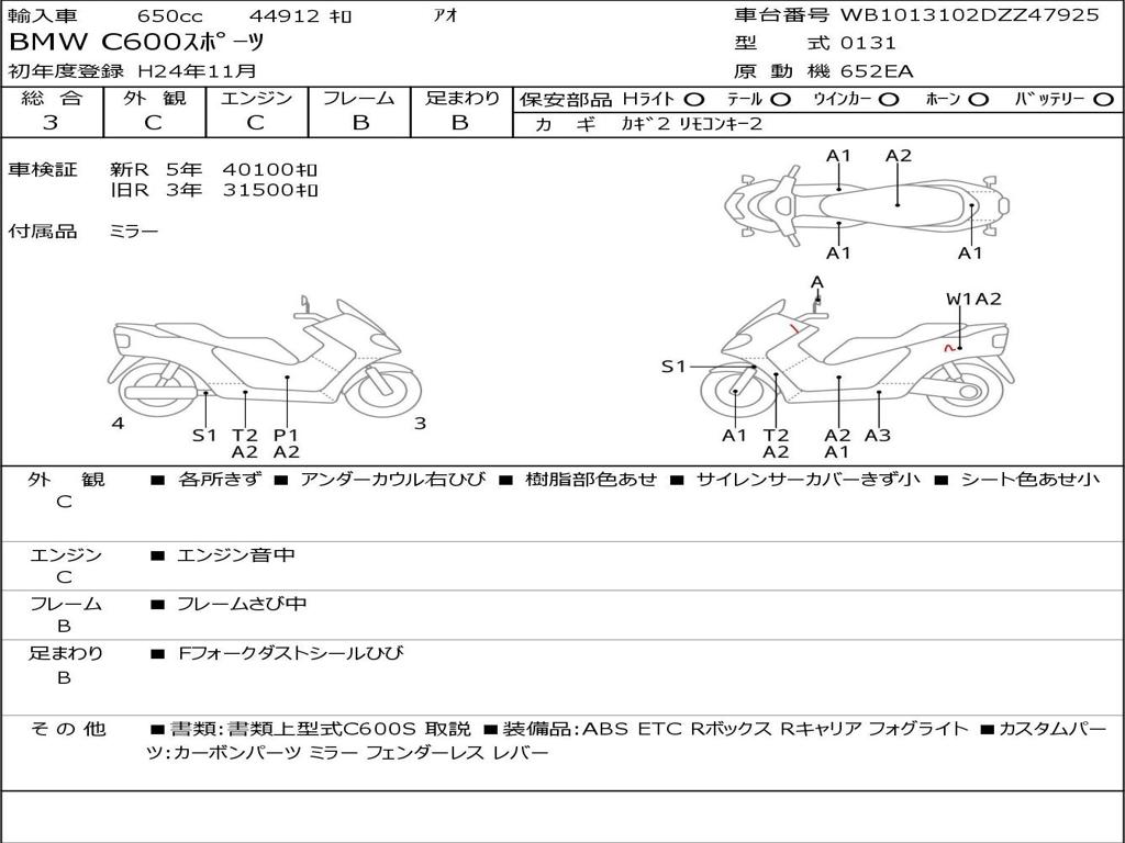 | Номер рамы / VIN | WB1013102DZZ47925 |