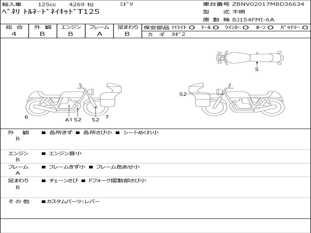 | Номер рамы / VIN | ZBNV02017MBD36634 |