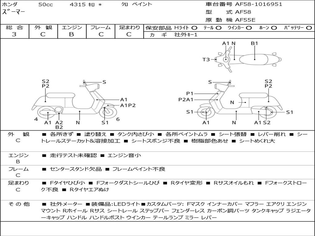 | Номер рамы / VIN | AF58-1016951 |