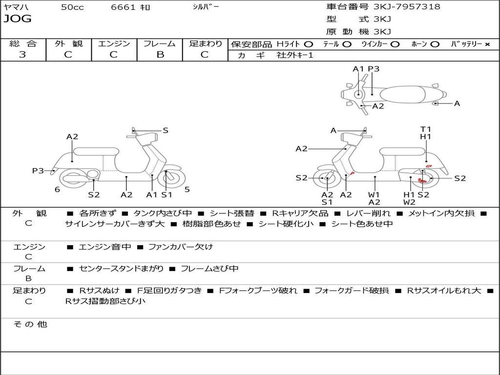 | Номер рамы / VIN | 3KJ-7957318 |