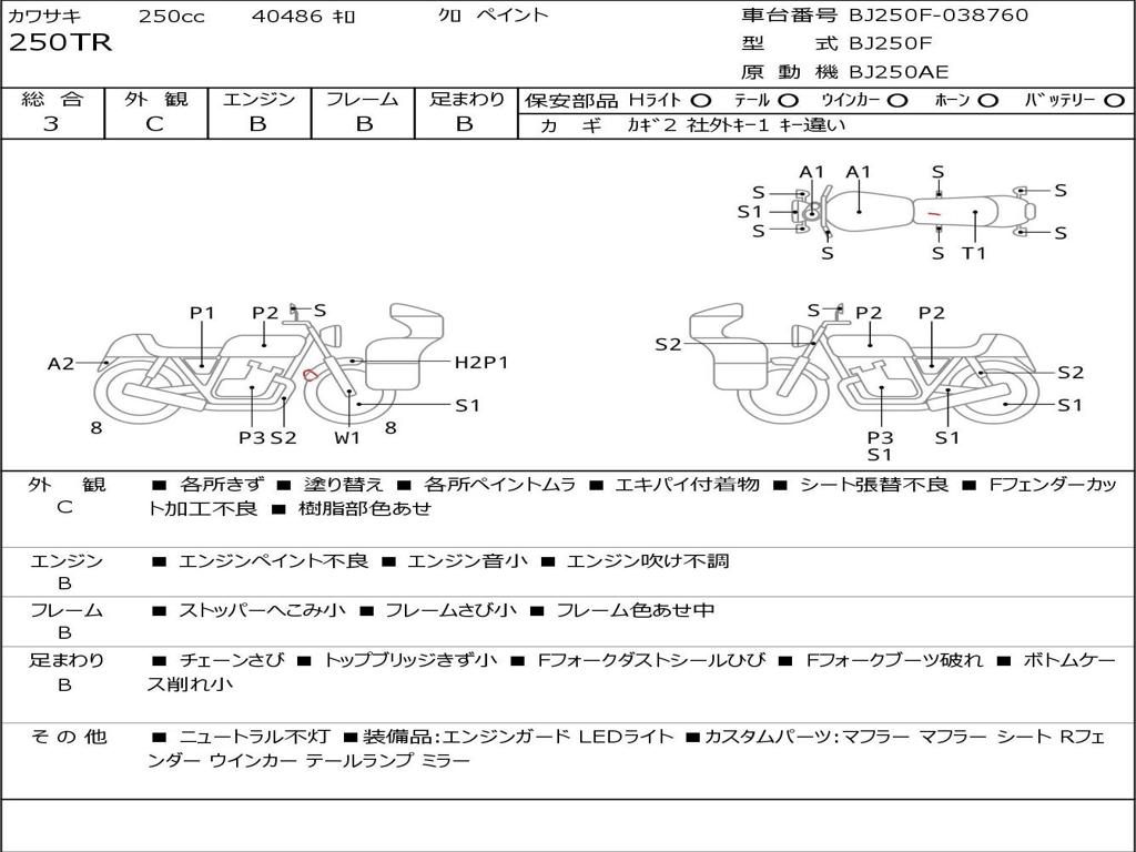 | Номер рамы / VIN | BJ250F-038760 |