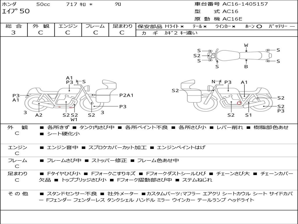 | Номер рамы / VIN | AC16-1405157 |